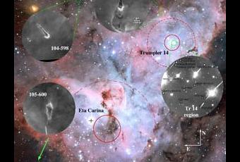 Dentro de la Vía Láctea, Carina es una de las regiones de formación estelar más activas y masivas; allí conviven estrellas de baja masa junto a las estrellas más masivas conocidas en nuestra galaxia. En el centro de esta región hay dos cúmulos estelares: Trumpler 14 y Trumpler 16, ambos cúmulos están poblados por estrellas de gran masa, lo que genera una cantidad considerable de radiación ultravioleta que calienta y hace brillar el gas circundante, dando originen a la nebulosa de Carina.