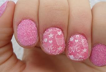 Para la manicura, estampé en blanco el diseño y le puse encima transparente y esperé que se secara (unos 30 minutos).