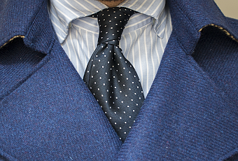 Por si no nos habíamos dado cuenta, se trata de un abrigo con configuración cruzada con dos hileras de tres botones cada una, otro aspecto más que nos recuerda las reminiscencias marino-militares de este tipo de prendas.