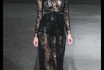 Kris Goyri presentó una colección casi monocromática -algunos tonos de azul y sepia fueron el contraste- inspirada en un par de grandes artistas, uno precursor de los conceptos de abstracción en la pintura: Wassily Kandinski; y otra más contemporánea, Sun K. Kwak, que se caracteriza por intervenir grandes espacios con formas puras y altamente decorativas.