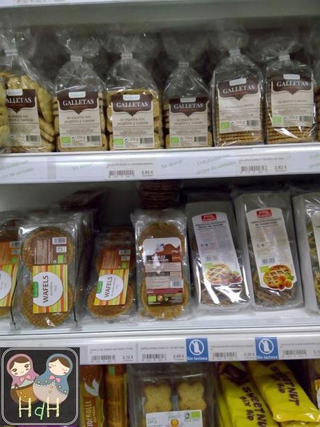 Nada más entrar parece un supermercado normal y corriente (lo es,pero biológico =P ), está todo super bien ordenadito, y también hay productos que te dejan probar, habían bandejitas con galletas de chocolate y cucharitas con crema de calabaza. Nosotras probamos las galletas,y estaban riquísimas,pero luego las vimos en la estantería y nos fijamos en que su precio era un poco elevado para nuestros bolsillos,creo que costaban unos 4€. Y hablando de precios,me hubiera llevado un montón de cosas si no fuera por el precio! Supongo que la calidad de los productos lo merece, pero estamos acostumbradas a que una bolsa de arroz nos cueste 70 centimos el kilo y no 2€...