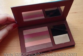 El motivo de que me guste tanto es que me parece la paleta perfecta para los maquillajes diarios y rápidos y para llevar en el bolso y poder retocarnos en cualquier momento. Con ella tenemos contorno, colorete, iluminador y un maquillaje de ojos sencillo y favorecedor para cualquier tipo de piel. Se ha convertido en uno de mis básicos para esta temporada, y para todas las que, como yo, apenas tengáis tiempo para arreglaros (y en general tiempo para vosotras), también puede serlo. Además, al traer una brochita de esas que muchas sé que odiáis, te apañas todo el maquillaje de rostro, que sí, no es tan maravillosa como las que nos podamos comprar aparte, pero chicas, para llevarla en el bolso y darnos el apaño… yo hasta he metido en el mismo huequito una esponjita doble para los ojos, para maquillajes naturales y sencillos, ¡son fantásticas! Yo nunca las tiro, las llevo en este tipo de estuchitos o en bolsillos de los bolsos para retoques ^^