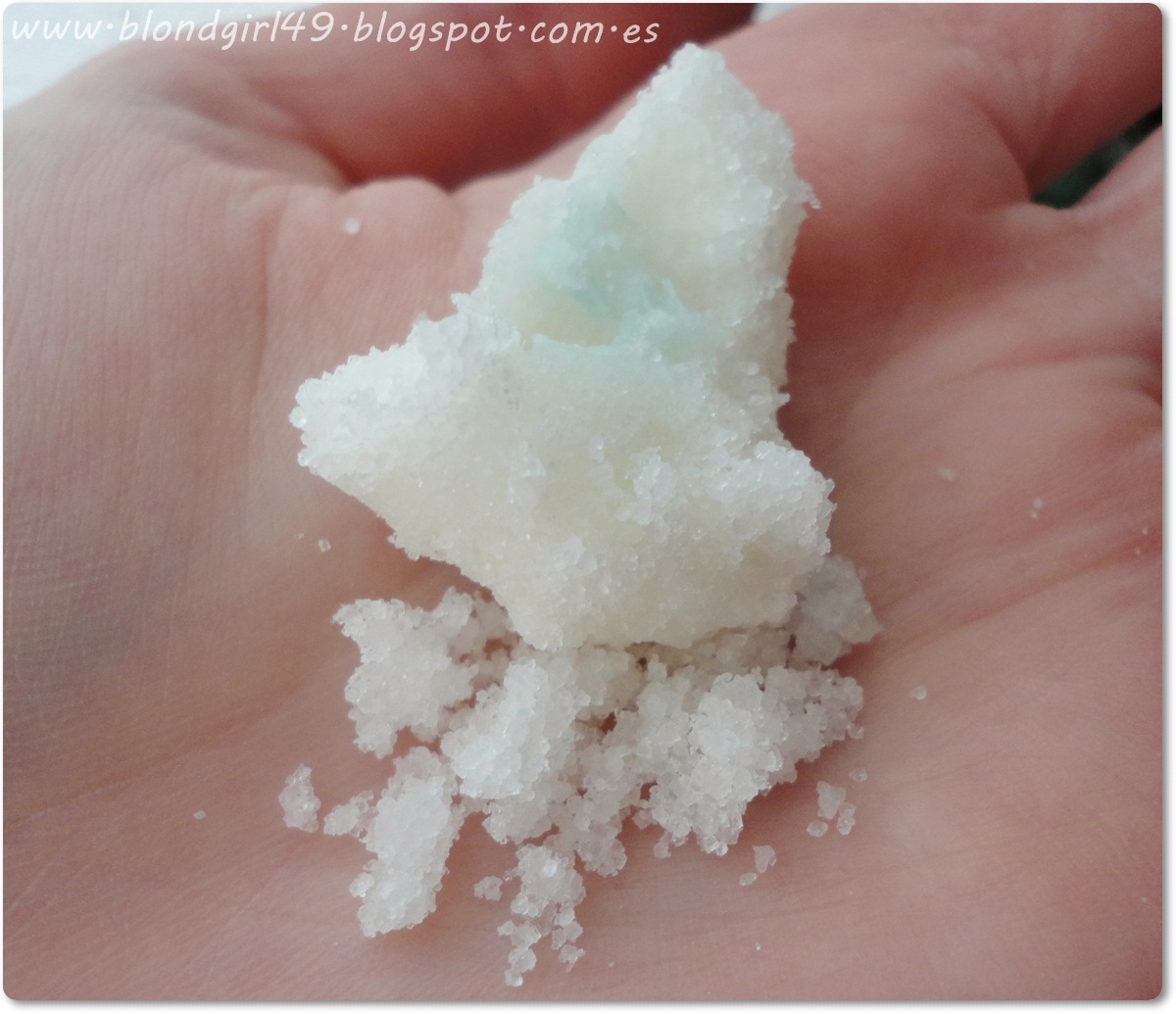 Hola amorcines ¿qué tal lleváis la semana? por fin miércoles, ¡¡qué ganas de fin de semana!! Ya estamos a día 6 y ya estoy pensando en el regalo de San Valentín para mi chico, pienso hacerle una tarta jijiji y el día anterior es el cumple de la abuelita de mi chico así que también le prepararé alguna cosita^^, seguramente iré de sorpresa el día 13 y les llevaré ya a los dos sus respectivos regalos :) me hace una ilusión tremenda, ya tengo todo planeado jiji ¿se nota no? :P EN LA WEB: Nuestra Sugar Scrub es dura, pero tiene su lado dulce. No le gustan las tonterías y estimula la actividad donde antes había pereza, atacando la celulitis con hinojo y jengibre. La calmante lavanda tiene un efecto equilibrante sobre la piel. Aplícala sobre la piel mojada en la ducha o la bañera (pero no la pongas bajo el agua porque desaparecerá antes de que tengas la oportunidad de comprobar sus bondades) frótate con ella y enjuaga. Nuestra Sugar Scrub no pierde el tiempo, se pone manos a la obra y hace el trabajo sin dudar.MI OPINIÓN:En primer lugar tengo que decir que este tipo de formato puede ser un poco engorroso a la hora de usarlo si lo empleamos "sin pensar". Se trata de una semiesfera de azúcar que está totalmente comprimida, por eso si nos vamos debajo de la ducha y manoseamos nuestro exfoliante corremos el riesgo de mojarlo y que se nos deshaga, por eso lo mejor y lo que recomendaría es que lo hagáis trocitos y os llevéis a la ducha lo que vayáis a usar, yo personalmente me cogía 2 trozos un poco más pequeños que el tamaño de una nuez (uno para cada pierna y zonas con celulitis). ¿Cómo la empleo? normalmente me hago una exfoliación semanal para que no me sea demasiado agresiva. Me suelo mojar y luego, con el grifo apagado, me aplico el exfoliante masajeando circularmente por las piernas y zona del culete que es donde tengo signos de celulitis, lo hago durante varios minutos y sin apretar excesivamente. Como son granos bastante grandecitos exfolia sin problemas, así que es mejor no apretar demasiado si no queremos llegar a dejarnos la piel irritada, pero si vamos con cuidado no hay problemas.El aroma no sabría definirlo bien, creo que lo que más he notado es el hinojo, el aroma es mas bien a hierba que no a otra cosa pero no resulta desagradable.A mi la sensación que me deja en la piel me gusta, la tengo sensible y aún así no me he hecho daño, sí que me queda algo rojita la piel pero es normal habiendo usado un exfoliante y encima que me pongo el agua hirviendo xD. Pero como ya os digo es muy agradable, como exfoliante funciona y como anticelulítico no sabría asegurarlo, según pone estimula la circulación (pero que yo sepa todos los exfoliantes lo hacen si realmente son granulados), no creo que elimine la celulitis pero sí pienso que como complementario a cremas anticelulíticas de farmacia tiene que ser ideal, sobre todo si aplicamos la crema después de la ducha.El precio quizás os pueda resultar algo excesivo pero pensad que da para varias veces (a mi me duró unos 3 meses) porque si lo partís en trozos lo podéis raccionar y pensad que con exfoliar una vez a la semana es suficiente. Yo creo que pagar unos 4€ en 3 meses sale bastante bien.TRUCO: si véis que os hace demasiado daño en la piel podéis disolver un trozo en la mano con unas gotas de aceite que os guste (aceite de almendras dulces por ejemplo) así resvala un poco más y no resulta tan agresivo.INGREDIENTES: Azúcar, Bicarbonato de Sodio, Ácido Tartárico (Potassium bitartrate), Sulfato de Sodio Laureth, Hinojo Fresco (Foeniculum vulgare), Aceite de Hinojo (Foeniculum vulgare), Aceite de Lavanda (Lavandula angustifolia), Raíz de Jengibre Fresca (Zingiber officinale), Cocamide DEA, Lauril Betaína, *Limoneno, *Linalool, Perfume, Clorofila (CI 75810). * Se da de forma natural en los aceites esencialesPRECIO: 4,20€ los 100gr (1 unidad) (antes valía 3,95€ pero veo que ha subido) **IGLÚ AUSTRALIANO - EXFOLIANTE CORPORAL**[Edición limitada Navidad] EN LA WEB PONE: Lo sabemos, lo sabemos... no hay iglús en Australia. Simon fué a aprender a construir iglús en Finlandia y a un colega australiano que había en su grupo no se le dio nada bien, así que Simon le contruyó uno para él. Este fantástico exfoliante está hecho con refrescante pino siberiano y un toque sándalo y eucalipto australiano en honor a este amigo. Todo ello empaquetado en una semiesfera de azúcar de comercio justo. Pruébalo junto a Aurora Boreal y saldrás oliendo a aunténtico y refrescante bosque invernal.MI OPINIÓN: al igual como he comentado en el anterior también me lo partí en trozos, este se me deshizo con más facilidad y encuentro que el gránulo era más finito aunque no los tuve al mismo tiempo para compararlos así que no podría asegurarlo al 100%.Tiene la misma forma de semiesfera que el anterior sólo que este es en color blanco y en el centro tenía colorcito verde (en la foto de abajo se nota un poco).Este me lo aplico de la misma manera que he comentado antes y también en más zonas del cuerpo (no sólo en zonas con celulitis como el anterior) y la verdad es que me resultó más suave que el de Sugar Scrub pero también la exfoliación en la piel es muy buena. En cuanto al aroma es bastante agradable yo notaba una mezcla entre coco y eucalipto, y si usaba sobre la piel trozos con color verde (zona del central por dentro del exfoliante) notaba la piel más fresca (seguramente por el eucalipto).El precio no sé si lo deben haber subido porque ahora no está en la web, pero me parece bastante razonable (incluso si lo han subido a 4,20€) por el mismo motivo que con el Sugar Scrub. INGREDIENTES: Azúcar, Bicarbonato de Sodio, Aceite de Coco Virgen Extra (Cosos nucifera), Ácido Tartárico (Potassium bitartrate), Sodium Laureth Sulfate, Hibisco Rosella Seco (Hibiscus sabdariffa), Aceite de Pino Siberiano (Pinus sylvestris), Eucalipto Azul (Eucalyptus Globulus), Aceite de Sándalo (Fusa