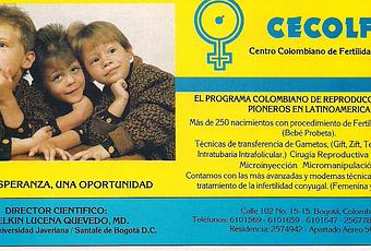 Curioso anuncio de la clínica de fertilización in vitro CECOLFES. Recuerdo que en aquellos tiempos la fertilización en vitro, acá en Colombia, todavía era un tema tabú...