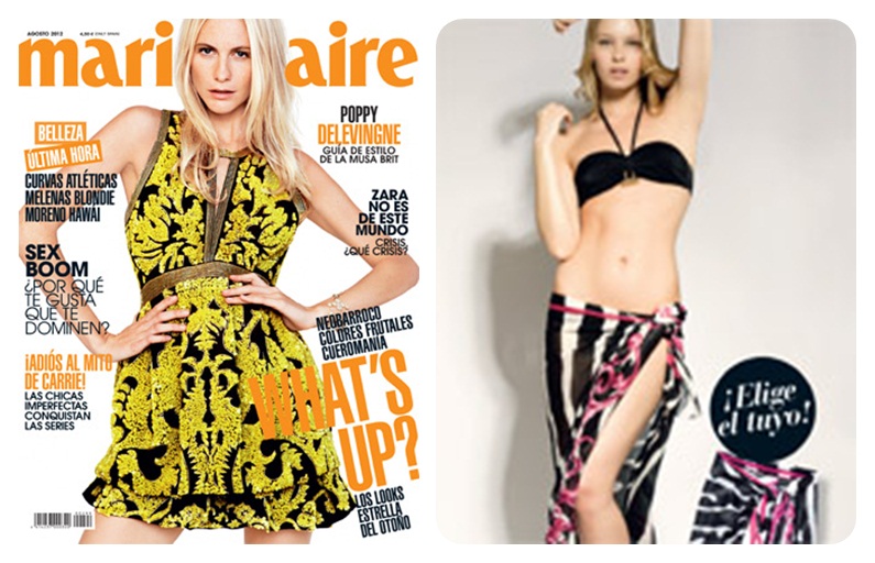 En portada tenemos a Poppy Delevingne que lleva un vestido brocado que me parece chulísimo de Roberto Cavalli, quizás no sería un vestido que yo elegiría para mi, sobre todo por el color amarillo que me sienta de pena pero en otro color me encanta!En moda también nos adelantan lo que se llevará en otoño para que podamos ir renovando nuestro armario a la vuelta de nuestras vacaciones. En belleza destacan un artículo de manicuras y pedicuras, además también hay otro para preparar nuestro cuerpo para el verano con la excusa de que todavía estamos a tiempo jajaja.De regalo un pareo de Class Roberto Cavalli