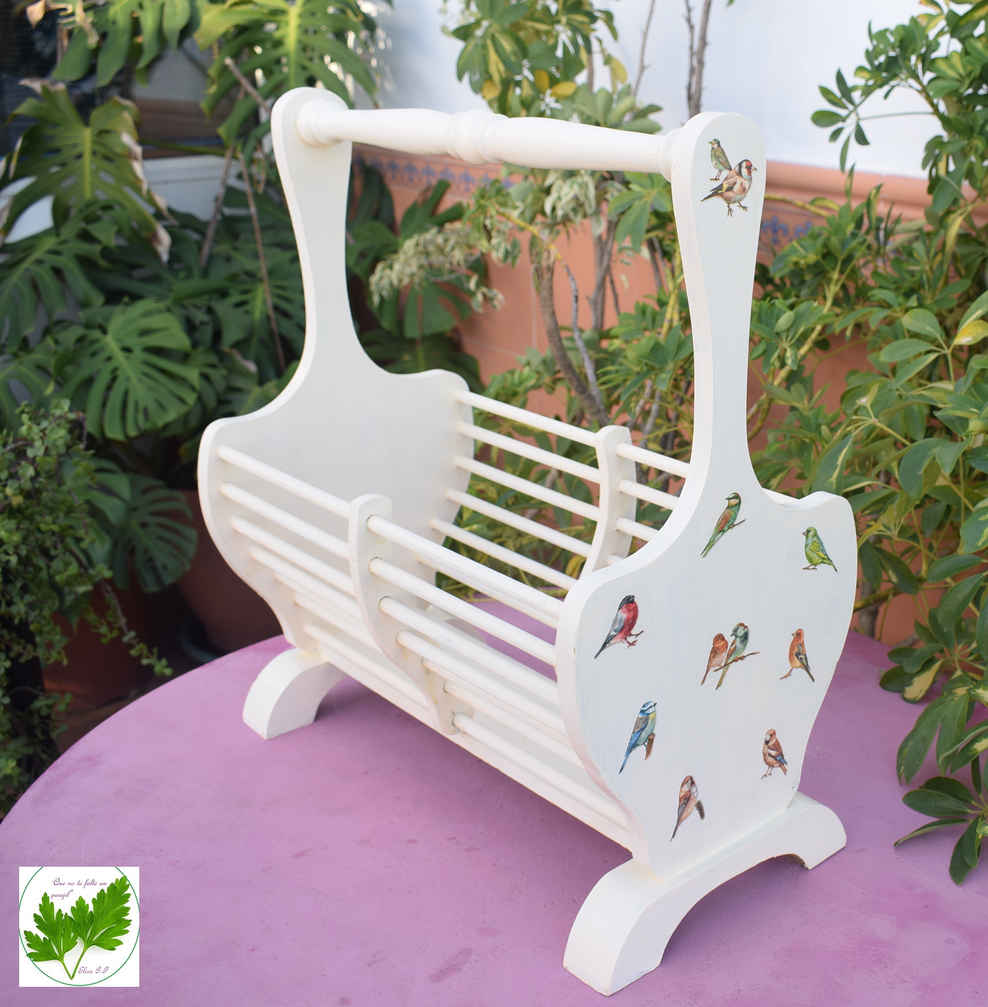 En primer lugar pinté el revistero dando una mano de pintura. La pintura a la tiza no necesita imprimación ni lijado previo. Sólo debe estar bien limpia y seca. Dí dos manos, dejando secar 24 horas entre una mano y otra.