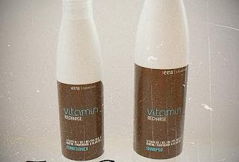 “Vitamine Recharge Hair Therapy” contiene un concentrado de vitaminas , B1, B2, B6, PP, B12, E, biotina, pantenol y aceite de oliva, que re-equilibran el pH de nuestro cabello a la vez que le aportan brillo y nutrición.