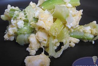 Se corta calabacín y puerro en juliana y sofreir con un poquito de aceite, cuando estén listos se agrega los huevos batidos, cuando estén casi se agrega queso de fundir y no olvidarse de la sal...