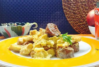 Revuelto de chorizo con picatostes. Hoy según me he asomado a la ventana y he visto este persistente sirimiri , adornado con cielo gris encapotado me he puesto de inmediato a pensar en un desayuno que me ayude a sacarme el sol que llevo dentro y tras tropezar con este chorizo gallego que se me tiró (lo juro) en mi bolsa de la compra ayer tarde a la chita callando y sin rechistar, he pensado que podía hacer buenas migas con unos picatostes y juntos, tras la presentación, que para éso soy una clásica, les he dado un revolcón en la sartén con unos huevos de gallinas protegidas y gritarle a estas nubes tan tristonas que me he preparado un revuelto de enjundia y que tras el desayuno tan delicioso que me espera, me da igual que sigan tan tercas escondiendo los rayos de sol porque en mi plato me acabo de encontrar con todo un arco iris.