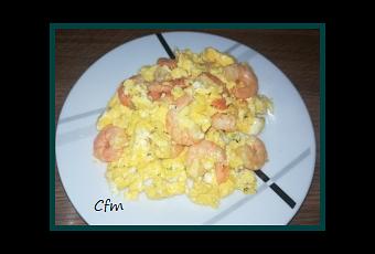 -Ponemos las colas de langostino al microondas según las instruccines-Las ponemos en una sartén retirado parte del aceite que llevan a fuego suave-Agregamos los huevos y batimos constantemente con el fuego siempre suave hasta que estén a nustro gusto-Echamos sal al gusto.