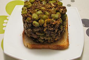 - Pela la morcilla, desházla y añádela a las habas.