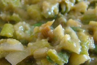 He puesto una sartén a fuego medio con dos cucharadas de aceite. He rehogado los ajos y los espárragos con una pizca de sal hasta que se han ablandado. He retirado del fuego y he reservado.