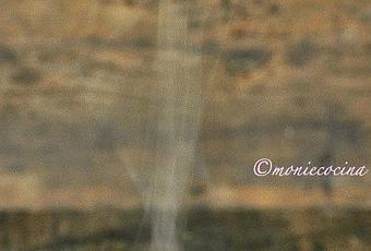 No penséis que es indispensable tener una mandolina para hacer esta tapa, perfectamente podéis cortar la patata finamente con un cuchillo, necesitamos 12 láminas de patata. Las freímos en aceite no muy caliente, unos 120 grados primero y luego subiremos para que se tuesten un poco. Si hiciéramos patatas fritas las dejaríamos más tiempo, pero como son para acompañar un revuelto, yo prefiero dejarlas fritas como para tortilla de patata, las sacamos y salamos. Si queréis ver mis patatas fritas favoritas en este post las podéis encontrar.Para el revuelto, le quitamos a la morcilla la piel y la desmenuzamos en una sartén con un par de cucharadas de aceite, así las tres. Sofreímos unos minutos y rompemos los tres huevos encimas, ponemos una pizca de sal en cada yema y cuando empieza a cuajarse la clara es cuando a mi me gusta romper la yema y remover todo el revuelto.Para emplatar colocamos la lámina de la patata, encima un poco de revuelto, otra lámina, más revuelto y una última lámina cerrando la tapa. Así construimos las cuatro tapas.