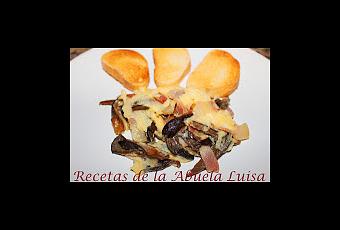 - Limpiamos las setas y las troceamos, las vamos rehogando a fuego lento con un poquito de sal. - Entretanto cortamos el bacon en taquitos, lo añadimos cuando las setas estén ligeramente doradas, lo dejamos unos minutos hasta que se dore un poco. - Vamos batiendo ligeramente los huevos, salpimentando al gusto. - Añadimos los huevos, removemos hasta que esté cuajado a nuestro gusto.