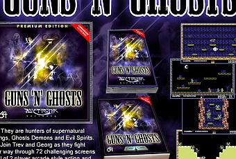 Según parece Guns 'n' Ghosts será un plataformas con muchos toques arcades para uno o dos jugadores inspirados en clásicos como Bubble Bobble o el propio Ghosts 'n' Goblins. Poseerá 72 pantallas estáticas repletas de zombies a los que cargarnos, buenos gráficos como viene siendo habitual en las creaciones de este tandem, y la música de Richard Bayliss, otro habitual en la escena del 8 bits de Commodore.