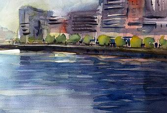 Trabajos realizados sobre el tema de la ría de Bilbao en la Agrupación de Acuarelistas Vascos.
