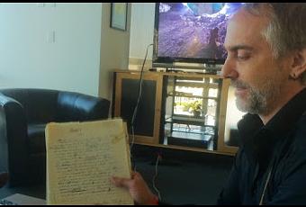 Richard Garriot muestra el manuscrito que comenzó la serie Ultima. Imagen: PC Gamer