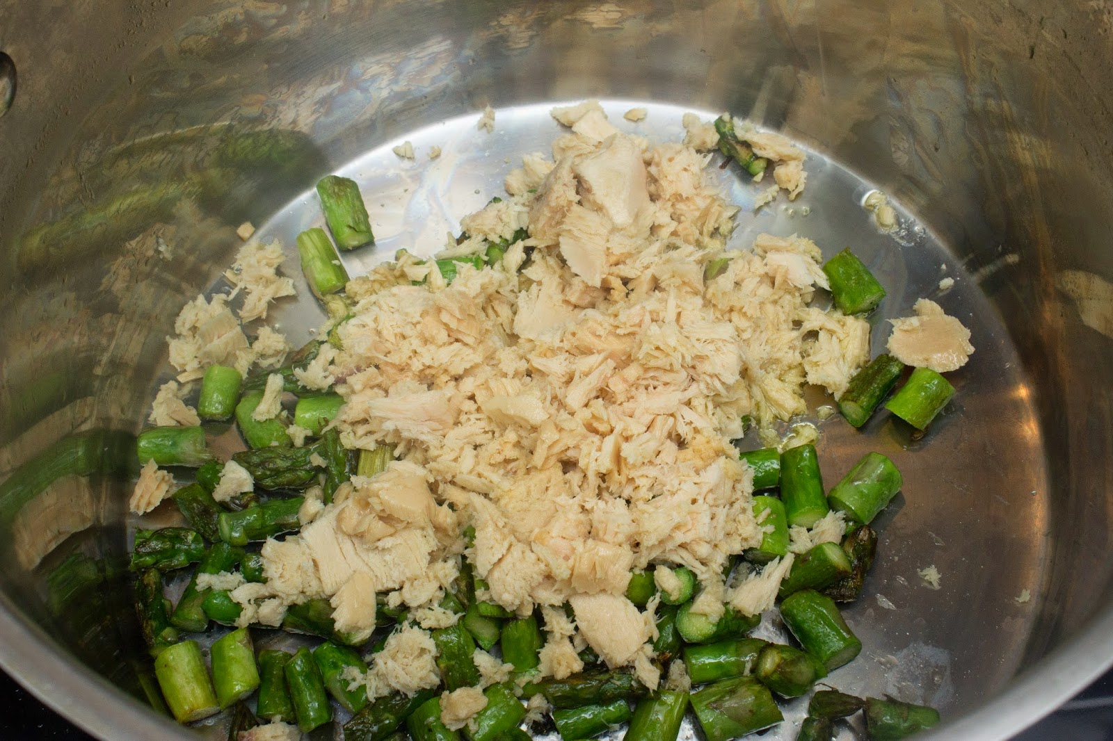 Luego añade las latitas de atún. Yo eché dos latas pero luego añadí al final dos más para que tuviera más atún.