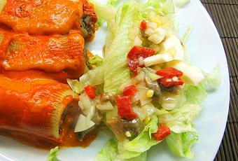 Servimos la pasta cubierta con la salsa, acompañada de una buena ensalada.