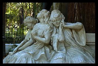 Uno de mis lugares favoritos de Sevilla es la glorieta dedicada a Gustavo Adolfo Bécquer, en pleno parque de María Luisa. Pocos lugares consiguen, con la sencilla conjunción del grupo escultórico con la naturaleza circundante, hacernos evocar los poemas de romanticismo exaltado que nos regaló este singular escritor decimonónico. Lo que más me interesa son las figuras femeninas que, sentadas, parecen escuchar arrobadas una de las poesías del genio, en las que supo expresar de manera sublime las contradicciones del sentimiento más humano. No habiendo gozado de demasiado éxito literario en vida, después de su muerte las Rimas quedaron como un monumento al Romanticismo del que bebieron posteriormente muchos poetas líricos españoles, como Machado o Cernuda. Las Rimas son un festín para los sentidos. Repletas de fragmentos inolvidables y mil veces citados, han servido de inspiración (y directamente plagiadas) por miles de cortejadores, que advierten en las palabras de Bécquer la traducción exacta al lenguaje de esa conmoción amorosa que todo el mundo, de un modo u otro, acabará experimentando a lo largo de su existencia.