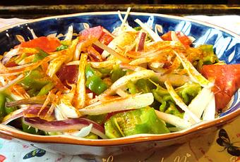 El rin ran, dependiendo de la zona en que estemos, será un plato diferente. El rin ran de Cazorla es más parecido al atascaburras manchego, patata, bacalao y pimiento seco, sin embargo, el rin ran murciano se parece más a la brandada de bacalao, eso sí con pimiento seco. El rin ran andaluz ya es más tipo ensalada, pero lleva patata cocida y atún. Y por fin el rin ran extremeño, este sencillo plato es una ensalada de pimientos en crudo súper refrescante y una buena opción para tomar productos de la huerta en temporada.
