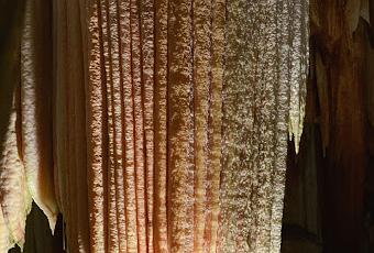 No hay amigo o familiar mío que venga a visitarme a mi pueblo, cuando estoy pasando allí unos días de vacaciones o cualquier fin de semana, que se libre de visitar las cuevas, porque a casi todo el mundo acabo llevando. La zona de Gredos da para mucho en otoño: paseos por el campo, ahora en esta estación tan bonito, coger setas o castañas, acercarse a las numerosas gargantas, piscinas naturales o riachuelos que hay a cada paso, visitar castillos, originales museos, realizar inigualables rutas de senderismo... pero en tardes de esas de "se barrunta tormenta" ir a las Cuevas del Águila es una de las mejores opciones que se pueden hacer sobre todo con niños. Allí se está fresquito en verano y casi calentito en invierno, pues tienen una temperatura constante de 17 grados centígrados, y mucha humedad, en torno al 95 %. Además ir con pequeñajos es una experiencia fantástica y divertida. No hay quien tenga más imaginación que ellos para ver cosas que nadie ve y así la cabeza de toro, la tortuga, la Virgen del Pilar, el número 13, la mano o el propio águila que llevan tantos años siendo fotografiados por los visitantes de las cuevas, dejan paso a una coliflor, la cáscara de un plátano, una loncha de bacon, un helado, el churrete de café en una taza... ¿¿ Tendría hambre mi niño ??