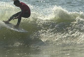Mazagón, Domingo 13 de Febrero. Amanece despejado y con una suave y fresca brisa Off-shore que mantiene el mar en condiciones perfectas para la práctica del surfing.