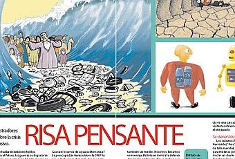 El III Salón Internacional de Humor Gráfico, que se realiza por tercer año consecutivo en nuestro país, plantea esta problemática a punta de sarcasmo. Ciento veinte obras visuales provenientes de 48 países martillan los ojos con ideas poderosas y osadas. “El arte no sólo es un fin, sino también un medio. Nosotros llevamos un mensaje distinto en torno a la defensa del medio ambiente. No es el discurso habitual, el volante, el libro. Sacamos el humor gráfico a la calle; son mensajes que realmente llegan a la gente”, dice el caricaturista arequipeño Omar Zevallos, uno de los organizadores del evento.