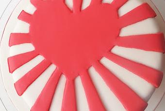 Holita! Os traigo una tarta que le regaló Rosa ( amiga de la familia) a su chico. Está decorada con el sol naciente japonés, pero en vez de un circulo, el sol tiene forma de corazón :)
