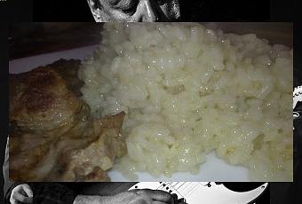 Lo he hecho muy simple, pero tan simple que he tenido que hacerlo 3 veces para que me saliera un "Risotto", que simplemente es un arroz que cueces a fuego medio sin parar de moverlo, esto hace que libere el... y que esté mas cremoso. Hay quien le añade un monton de cosas y con lo que lo hagas esta bueno.