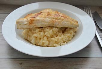 Una vez que tengamos el risotto hecho, poner los lomos de lubina salpimentados en una plancha con un poco de aceite y hacerlo por ambos lados. Servir caliente encima del pescado.