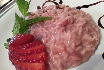 Un risotto algo diferente y muy de temporada. También es muy noto el con champaña, fresas y nata. Yo propongo una versión más natural, sin nata. El resultado ha sido satisfactorio: no ha salido nada dulce y el parmesano usado para mantecar, a equilibrado perfectamente el sabor.