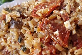 RISOTTO CON TOMATES SECOS, BERENJENA Y ALBAHACA