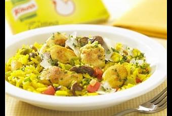 - Dorar en 50 grs. de manteca la suprema de pollo, cebolla, ají y hongos.