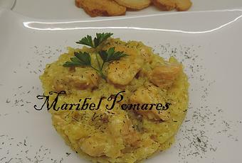 360 grs. Arroz.1,5 L. Caldo de pescado ò marisco.1 puerro.2 dientes de ajo.200 grs. Vino blanco.400 grs. Salmón sin piel ni espinas, cortado en dados.1/2 cucharadita de jengibre molido.1/2 cucharadita de mostaza molida.1/2 cucharadita de cúrcuma.1/2 cucharadita de eneldo.1/2 cucharadita de pimienta.Perejil.100 grs. Aceite de oliva.Sal rosa del Himalaya.80 grs. Queso parmesano.