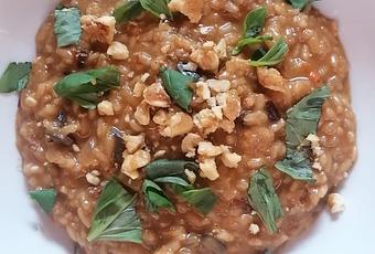 Una vez en el plato, puedes añadir unas hojas de albahaca y nueces troceadas.