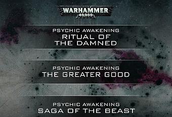 Seguimos con las revelaciones del Warhammer 40K Open Day que se esta celebrando hoy en Warhammer World y que llegan desde Warhammer Community (Aunque luego subiremos fotos de la gente que ha podido ir). Se han desvelado los siguientes tres capítulos de Psychic Awakening en el seminario que se ha dado. Son los que veis en la imagen.