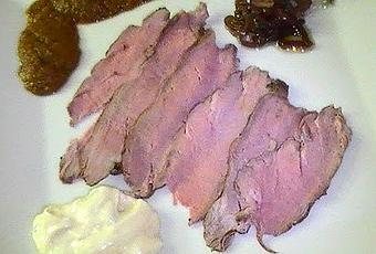 Esta es nuestra cena clásica de Navidad, porque el pavo lo tomamos en fin de año, un poco contracorriente, vamos.Esta carne, así preparada, está riquísima. Hice un solomillo de ternera más bien pequeño, de forma que el interior quedó rosa, no típicamente rojo como suele quedar con el solomillo de buey, que también está impresionante preparado como rosbif.