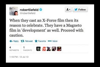 Cuando contraten a gente para una película de X-Force será motivo de celebración. También tienen una película de Magneto en desarrollo. Avanzad con cautela.