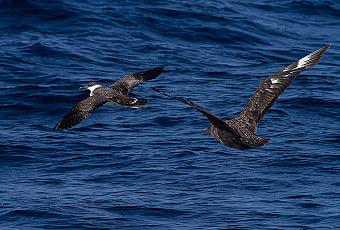 Págalo grande (Catharacta skua) persiguiendo a una pardela capirotadaA este comportamiento se le denomina cleptoparasitismo y entre las aves marinas hay varias especies que completan parte de su dieta de esta manera. El éxito del cleptoparasitismo depende de varios factores, que incluyen las diferencias competitivas entre ladrones y víctimas, y también la distribución espacial de la presas y de las víctimas.