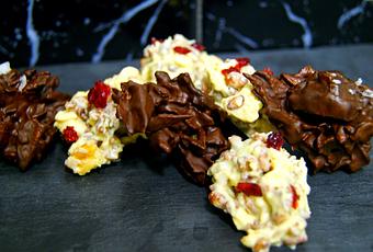 Las rocas pueden formarse con lo que se os ocurra, frutos secos como almendras, avellanas, nueces, o pasas e incluso como David Pallás apunta, con pan que tengamos por casa tostándolo con anterioridad.