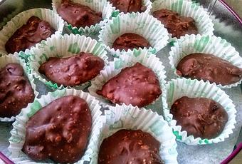 1 tableta de chocolate con leche o negro para postres (al gusto)1 puñado de pasas20 almendras picadas ( no molidas )
