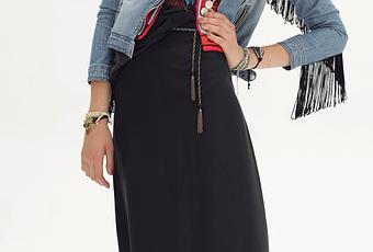 El ‘Rock Denim’ que propone Rapsodia se presenta en tres cortes de jean con sus correspondientes lavados. Cobran protagonismo los bordados, colores y texturas: leggins metalizados con camisa de jean y zapatillas de cuero son el “hit” de la temporada. Pigment dye en camel, rojo y verde le dan un toque artesanal.