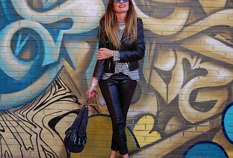 Un look muy rockero , pero doy el toque con tacones bicolor, que suavizan el outfit.