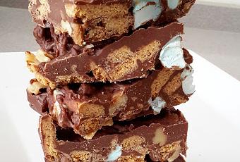 Ay qué cosa más rica la que os traigo hoy... el famoso ¡¡ROCKY ROAD (camino de roca)!! Se llama así porque cuando lo emplatas para presentarlo parece eso, rocas!!