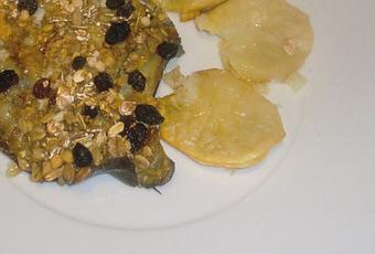 1 rodaballo 100 gr. de muesli 250 ml de sidra natural 1 patata Aceite de oliva virgen Sal