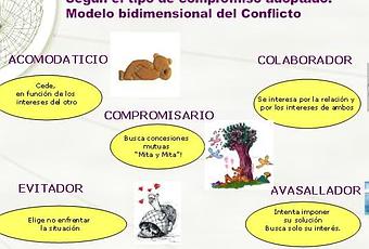 Por un lado tenemos el compromiso con la relación (hacia las personas protagonistas del conflicto) y por otro lado el compromisos con los intereses de las personas en conflicto. En el siguiente cuadro queda todo mucho más claro: