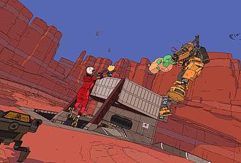 Este original videojuego, híbrido shooter-skater, está ambientado en un oscuro retrofuturo distópico bajo el desarrollo de Roll7, creadores del aclamado OlliOlli World y autores de su inmersiva jugabilidad.