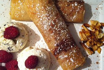 Comienzo el mes de febrero con una dulce propuesta. La masa brick son unas obleas muy finas de pasta que se emplea mucho en países árabes y que puede freírse u hornearse tras rellenarse con cualquier fanfarria dulce o salada.