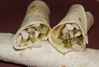 Calentamos las tortillas y las vamos rellenando con un par de cucharadas del relleno.